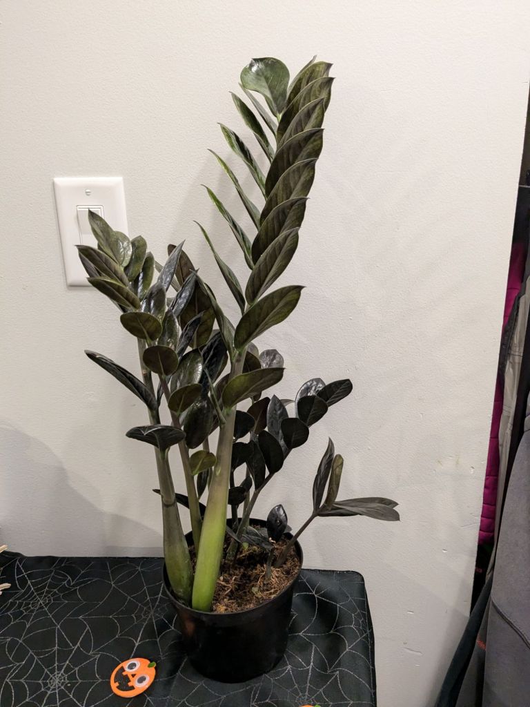 Other than a pot with adequate drainage and a location away from cold drafts, these plants don’t require much. They can handle dark corners and still grow (albeit slowly) in florescent lights. ZZs like to have their soil dry out completely between watering and can even survive long periods of neglect. Overwatering or poorly draining soil can lead to the rhizomes rotting. Because of their slow growing habits large/mature zz’s, especially Raven or Chameleon can be quite expensive in the houseplant world.